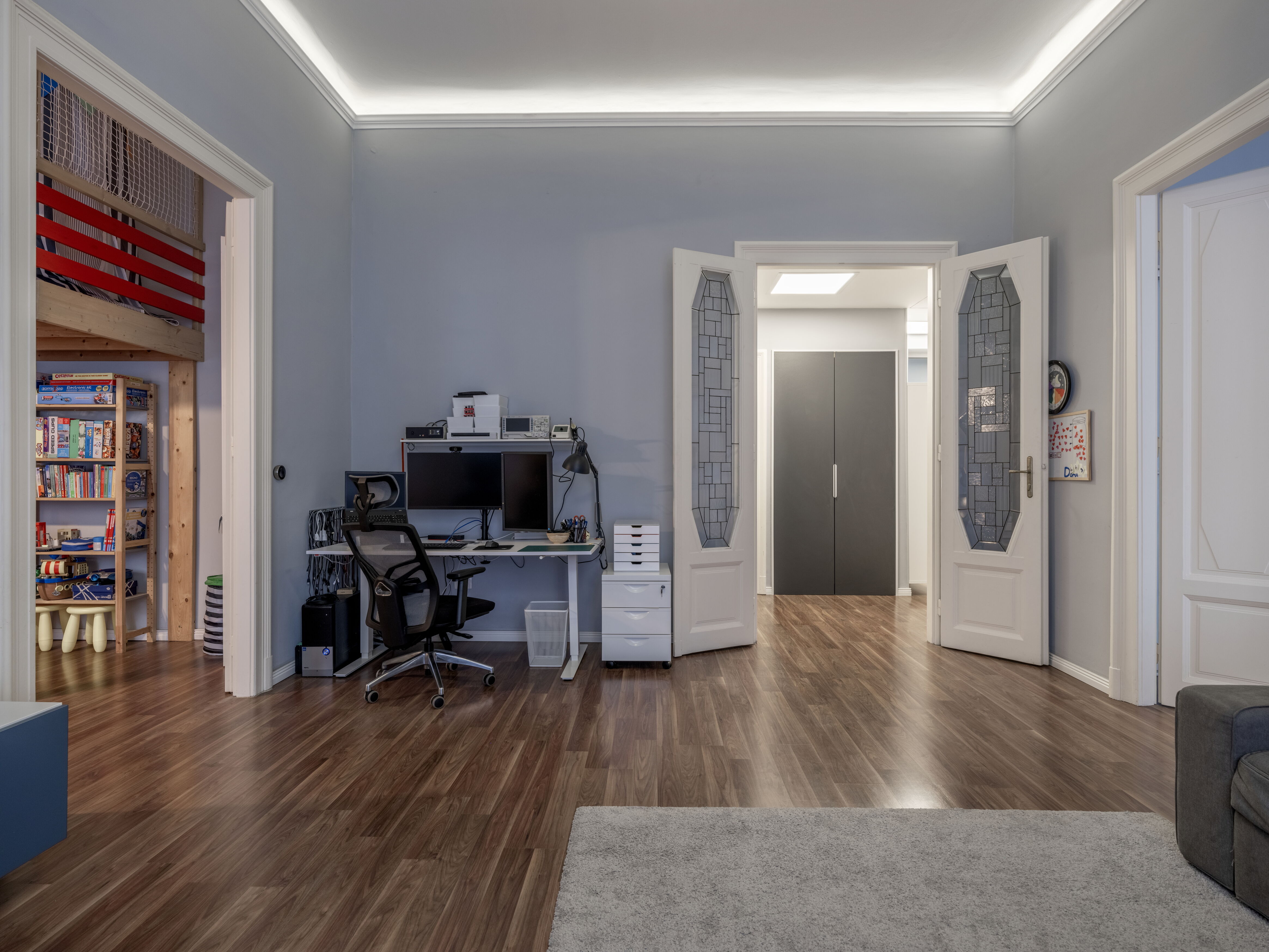 Tulajdonostól eladó egy 95 négyzetméteres, 2 hálószoba + nappali felújított okosotthon a IX. kerület frekventált helyén, a Ferenc térhez közel. A lakás nagy belmagassággal, hatalmas terekkel és egy játszó galériával rendelkezik.